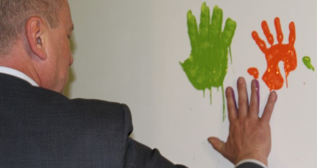 Az ünnepélyes megnyitó végén a jelenlévők szimbolikusan is nyomot hagytak a közösség részeként. A falon elhelyezett fehér papíron mindenki ott hagyhatta kézlenyomatát.