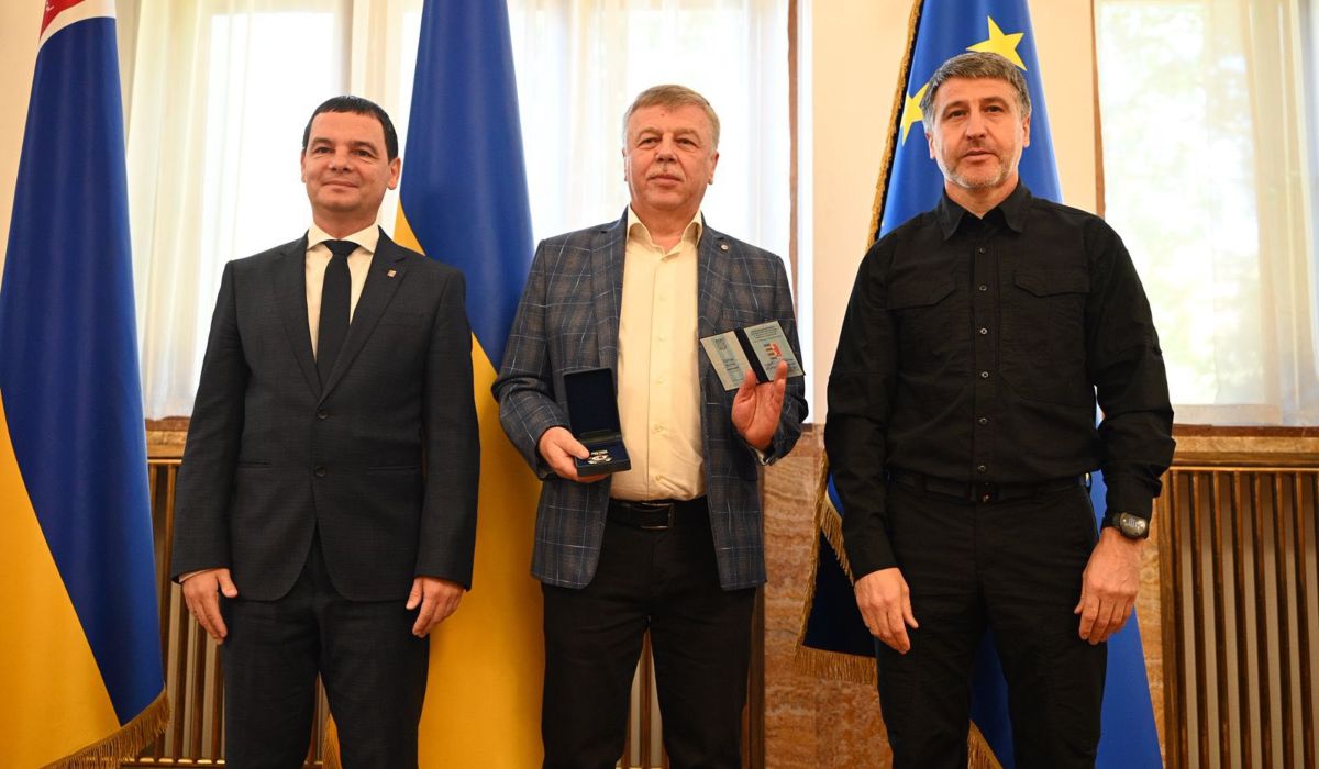 Mirszlav Bileckij kormányzó és Roman Szaraj, a megyei tanács elnöke közösen adta át a „Kárpátalja fejlődéséért” jelvényt.