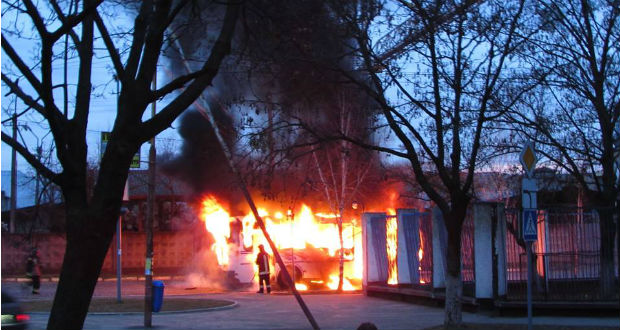 Az autóbusz a kora reggeli órákban kapott lángra a Beregszászi úton március 1-jén.