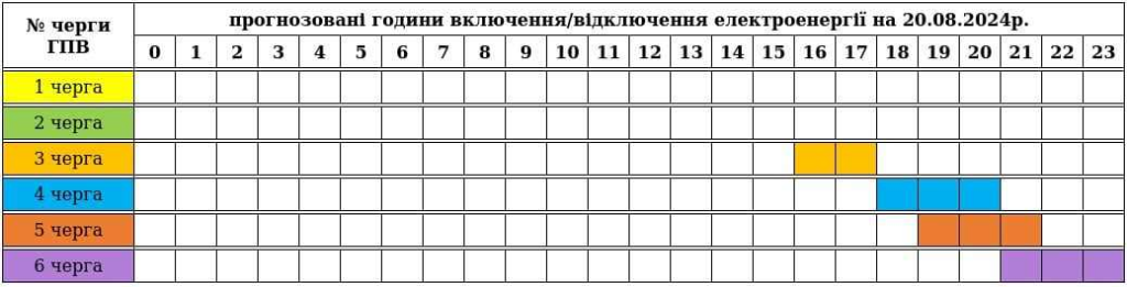 A Zakarpattyaoblenergo megyei áramszolgáltató frissítette az augusztus 20-ai óránkénti áramszünetek ütemtervét.