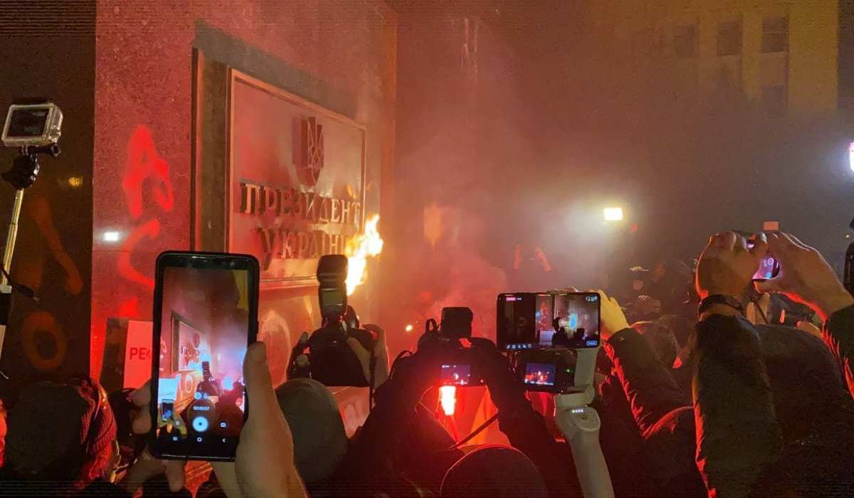 Helyszíni tudósítások szerint a szélsőséges aktivisták Szternenko 26. születésnapja alkalmából tartottak tüntetést, bebörtönzött társuk szabadon bocsátását követelve Volodimir Zelenszkij elnöktől és Arszen Avakov belügyminisztertől. A tiltakozó megmozdulás egy idő után tömeges zavargásba csapott át, amelynek során a randalírozók festékkel öntötték le az Elnöki Hivatal épületének falait, petárdákat és fáklyákat dobáltak rá. Ugyancsak betörték az épület ablakait. A falra a többi között az elnökre nézve sértő „balek” (loh) és az „Avakov – ördög” szavakat firkálták.