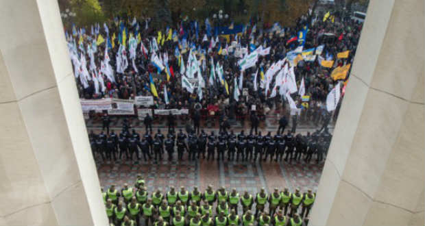 Sajtójelentések szerint délig több mint négyezer tüntető gyűlt össze a parlament előtt. A hatóságok rendkívüli erőkkel vonultak ki, az ukrán főváros központjában mintegy 3 és fél ezer rendfenntartó – zömében nemzeti gárdista – teljesít szolgálatot. A belvárosban korlátozták a forgalmat, a kormánynegyed utcáit – ahol a parlament a kormány és az elnöki hivatal épülete van – lezárták. Közvetlenül a parlamentet mintegy félezer gárdista védi. A demonstráció szervezői mintegy tízezer tüntetőt várnak a parlament épülete elé.