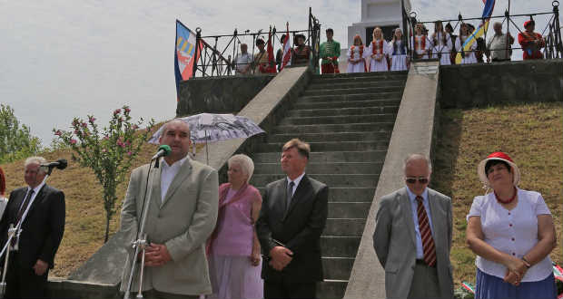 Az emlékműnél a himnuszok eléneklése után Barta József, a KMKSZ alelnöke köszöntötte az ünnepség vendégeit, közöttük Csutora Zsoltot, Magyarország Külgazdasági és Külügyminisztériumának helyettes államtitkárát, Jakab Istvánt, a Magyar Országgyűlés alelnökét, a MAGOSZ elnökét, Tilki Attila országgyűlési képviselőt, Bacskai József és Szalipszki Endre ungvári és beregszászi magyar főkonzulokat, dr. Papp Csabát, a Szabolcs-Szatmár-Bereg Megyei Kormányhivatal jegyzőjét, Petei Juditot, a Nagyszőlősi Járási Közigazgatási Hivatal elnökét, Hidvégi Üstös Pált, a Tisza nagykövetét, aki július másodikán Kőszegről rajtolva 800 kilométert futott, hogy a Kárpát-medencei települések polgárait egy zászló alá hívja Kárpátaljáért, Nagy Bélát, a Kárpátaljai Református Egyházkerület főgondnokát, dr. Orosz Ildikót, a Kárpátaljai Magyar Pedagógusszövetség (KMPSZ) és a II. Rákóczi Ferenc Kárpátaljai Magyar Főiskola elnökét, a Kárpátaljai Megyei Tanács képviselőjét, Vladiszlav Lecovicsot, a Kárpátaljai Ruszinok Szövetségének elnökét, valamint a KMKSZ vezető tisztségviselőit.