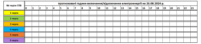Közzétette a Zakarpattyaoblenerho megyei áramszolgáltató az augusztus 26-ai óránkénti áramkimaradások ütemtervét.