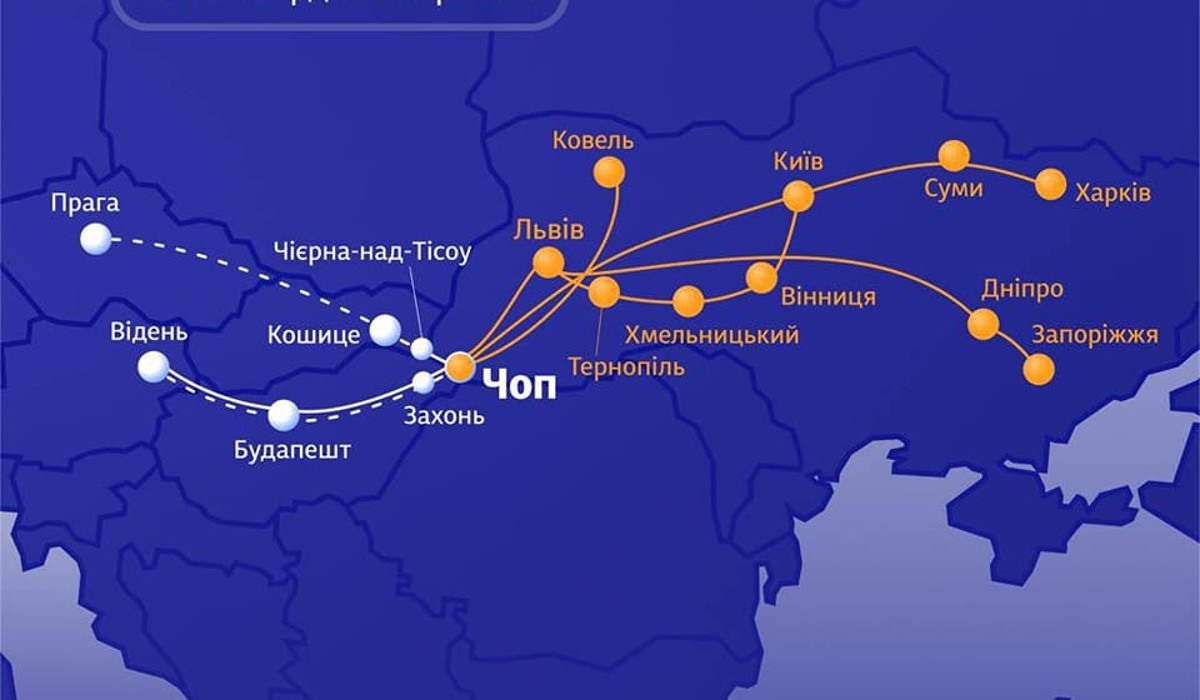 A közlemény szerint ezentúl a Kijev–Csap és a Kijev–Bécs vonatjáratok mellett a következő járatok közlekednek majd Csapon keresztül: