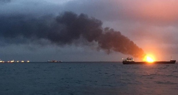 Hétfő este a Kercsi-szoros közelében kigyulladt két hajó, amelyek egyike egy gázszállító tanker volt. Tizenkét matrózt élve sikerült kimenteni. A baleset az orosz területi vizeken kívül történt.