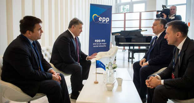 Orbán Viktor kormányfő Petro Porosenko ukrán államfővel tárgyalt csütörtökön Maastrichtban, az Európai Néppárt (EPP) csúcstalálkozója előtt – tájékoztatta a Miniszterelnöki Sajtóiroda vezetője az MTI-t.