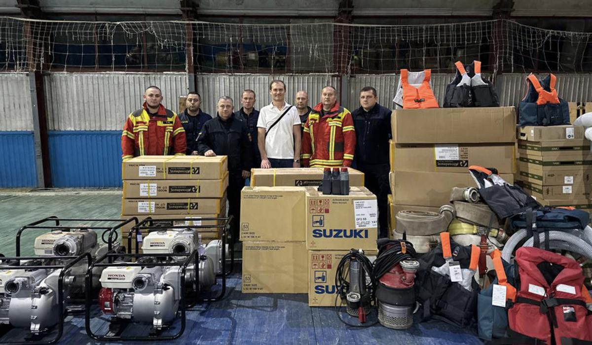 A herszoni mentőegységek számára többek között felfújható gumicsónakokat, mentőmellényeket, motoros szivattyúkat és tűzoltótömlőket is küldtek.