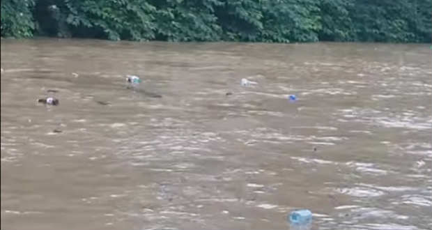 A heves esőzések következtében megáradt folyó rengeteg szemetet sodor magával – tette közzé a zakarpattya.net.ua hírportál június 21-én.