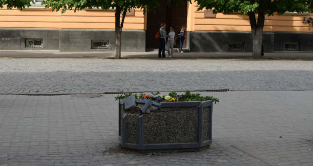 Ismeretlen tettesek megrongálták az egyik Beregszász főterére nemrég kihelyezett kültéri virágtartót.