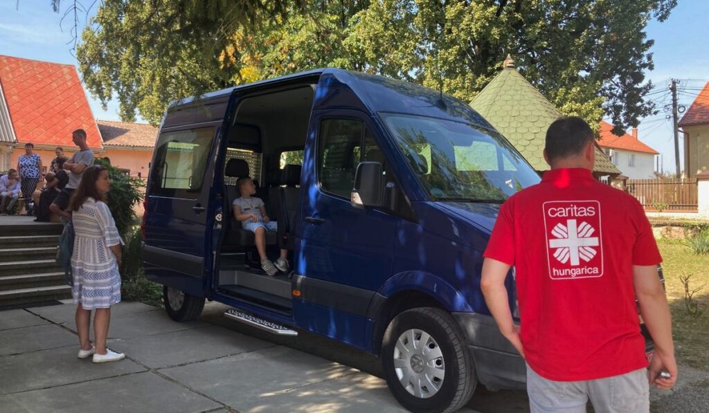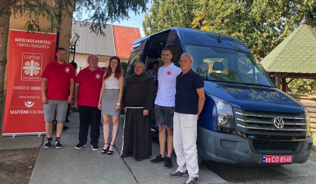 Speciális autóbuszt és tartós élelmiszert adott át Nagyszőlősön a Katolikus Karitász