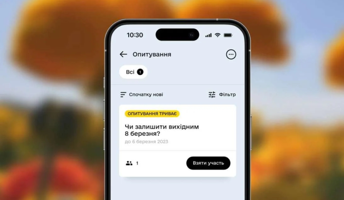 A Gyija (Дія) mobilapplikációban szavazást indítottak arról, hogy március 8-a szabadnap legyen-e, vagy munkanap. Erről Mihajlo Fedorov miniszterelnök-helyettes, Ukrajna digitális átalakításáért felelős minisztere adott tájékoztatást.