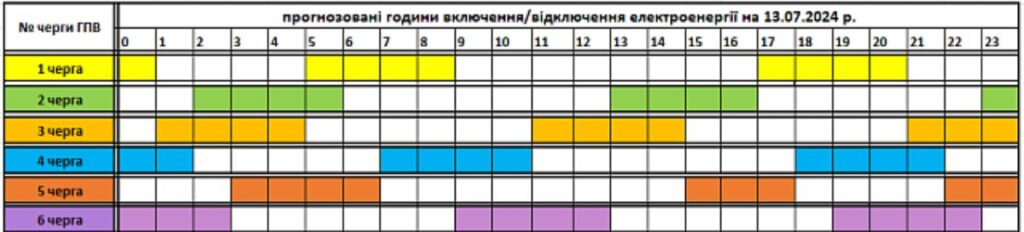 Közzétette a Zakarpattyaoblenerho megyei áramszolgáltató a július 13-án várható óránkénti áramkimaradások ütemtervét.