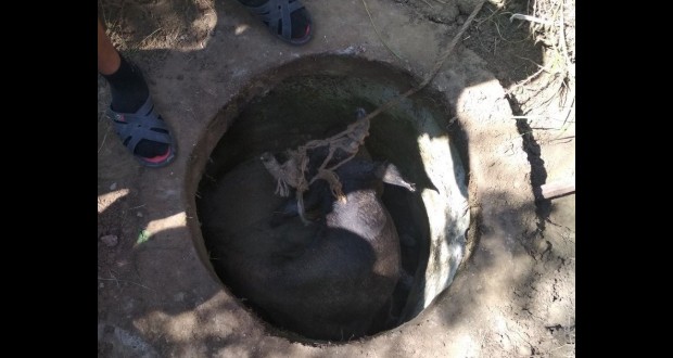 A Bohdan Hmelnickij utcán található elhagyatott katonai telep területén egy csatornanyílásba szorult tehénről értesítették a helyi mentőegységet augusztus 10-én.