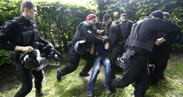 A kelet-ukrajnai Dnyipropetrovszkban hét személyt vettek őrizetbe, mert tiltott tárgyakat – elektromos sokkolót, gázpisztolyt, kést, gázsprayt – találtak náluk. Az ünnepi felvonuláson és nagygyűlésen a hatóságok adatai szerint mintegy hatezren vettek részt.