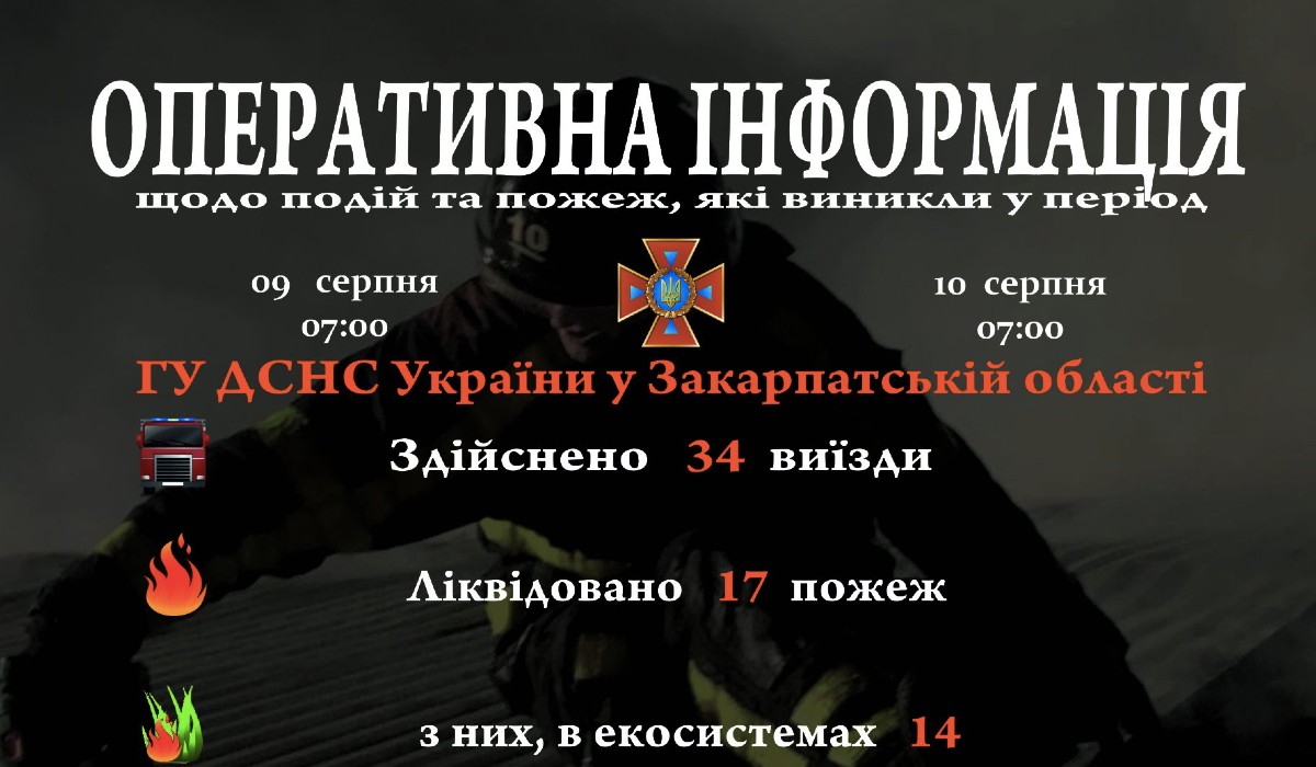 34-szer hívták a mentőalakulatokat megyénkben a Rendkívüli Helyzetek Állami Szolgálatának (DSZNSZ) kárpátaljai kirendeltségének jelentése szerint augusztus 9. és 10. között.
