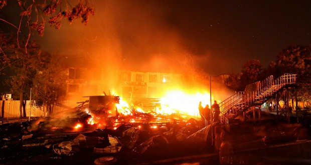 Az épület a tűzben teljesen kiégett és összedőlt. Az új faházakat tavaly építették a tábor területén.