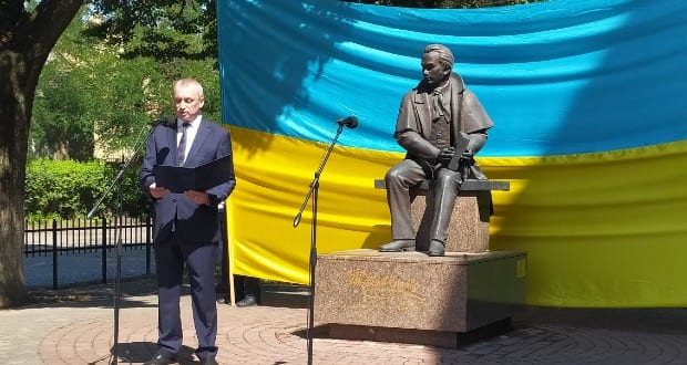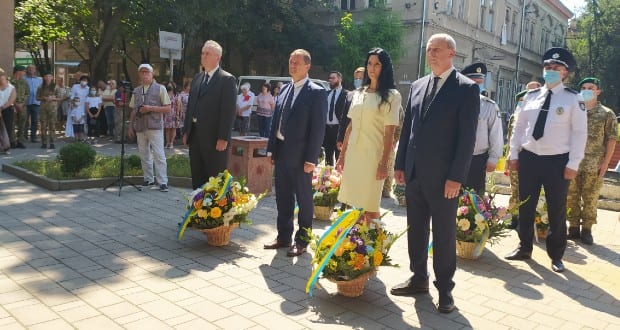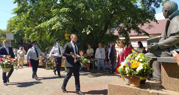 Ukrajna függetlensége kikiáltásának 29. évfordulójáról és a nemzeti zászló napjáról emlékeztek meg Beregszászban 2020. augusztus 21-én a Sevcsenko szobornál.