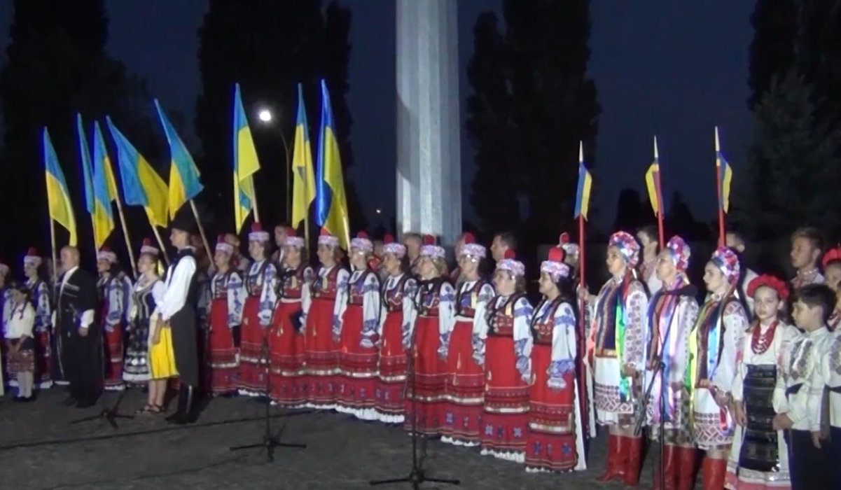 A felkelő nap első sugarai mellett a Kárpátaljai Megyei Érdemes Akadémiai Népi Kórus elénekli az „Ima Ukrajnáért” című dalt.