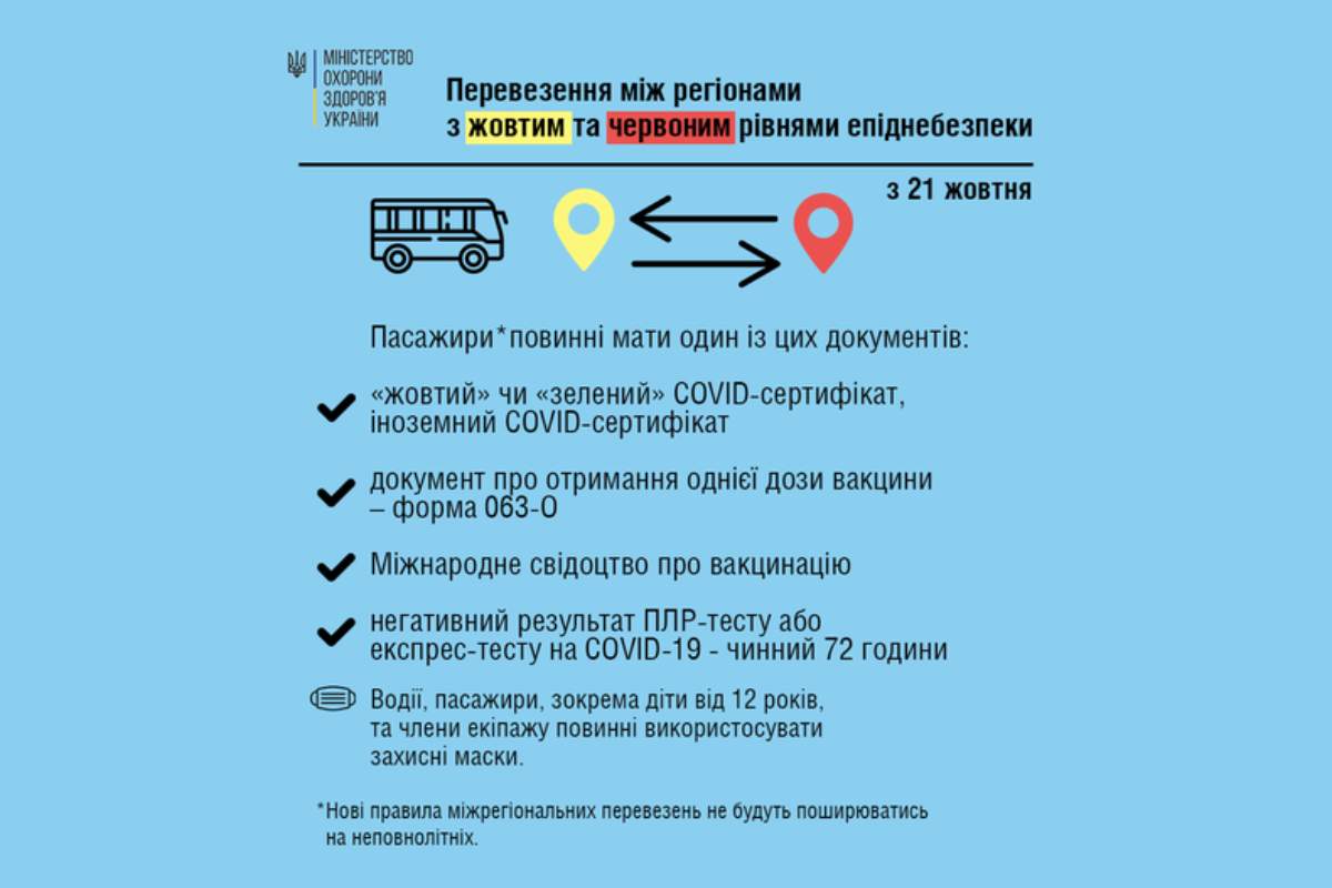 A járványügyi helyzetre való tekintettel módosulnak a sárga és vörös besorolás alatti megyék közötti közlekedés szabályai október 21-én – közölte Ukrajna Egészségügyi Minisztériuma.