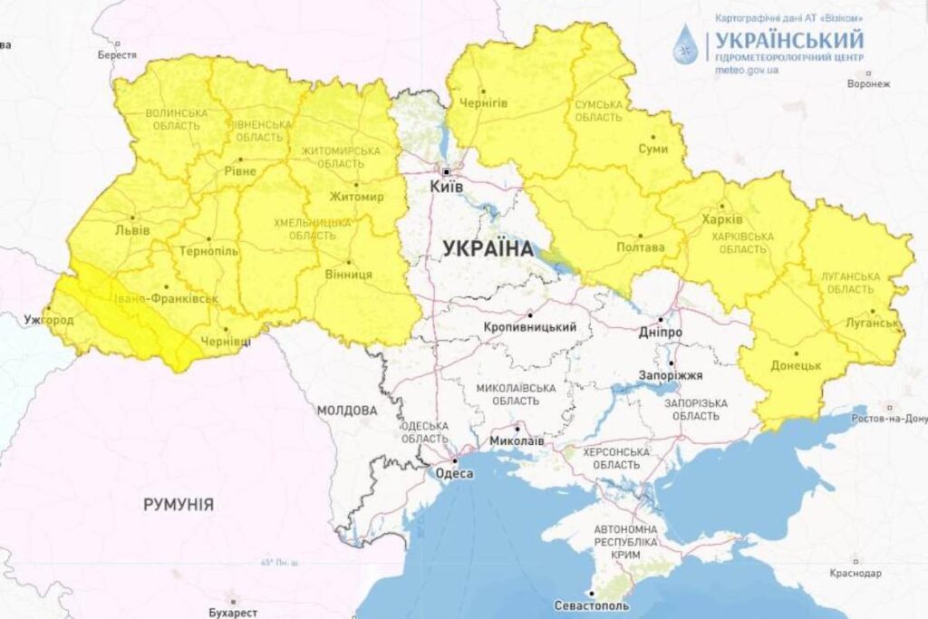 Az Ukrán Hidrometeorológiai Központ előrejelzése szerint vihar várható Ukrajna több megyéjében június 27-én.
