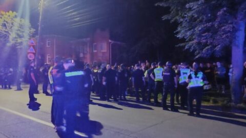 A körülbelül 80 fős csoport betörte a toborzóközpont kapuját és megpróbált bejutni az épületbe.