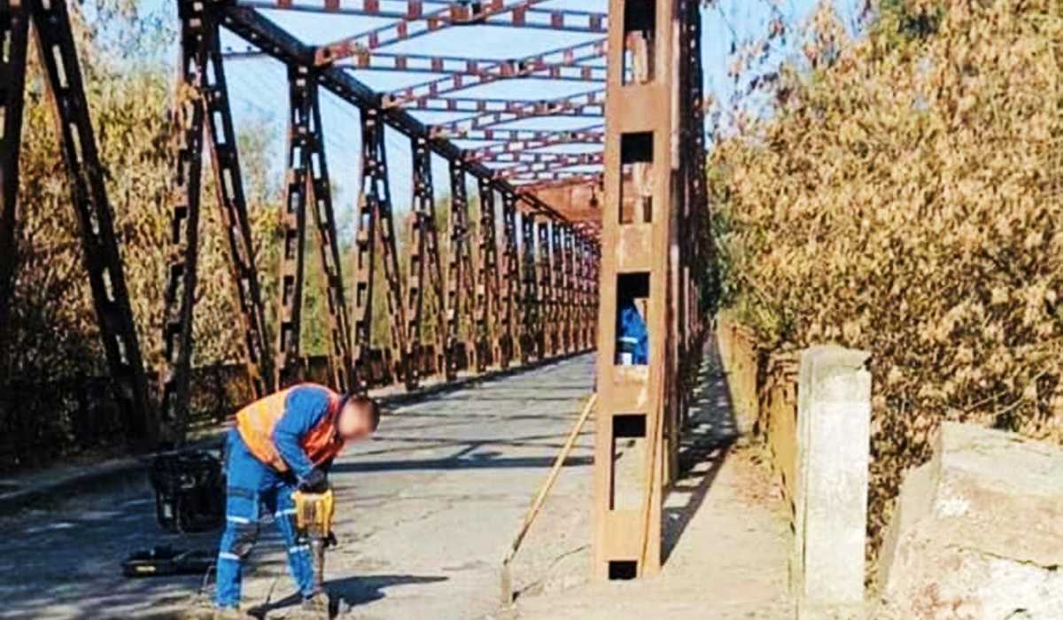 A Tisza-híd a javítási munkálatok alatt októberben