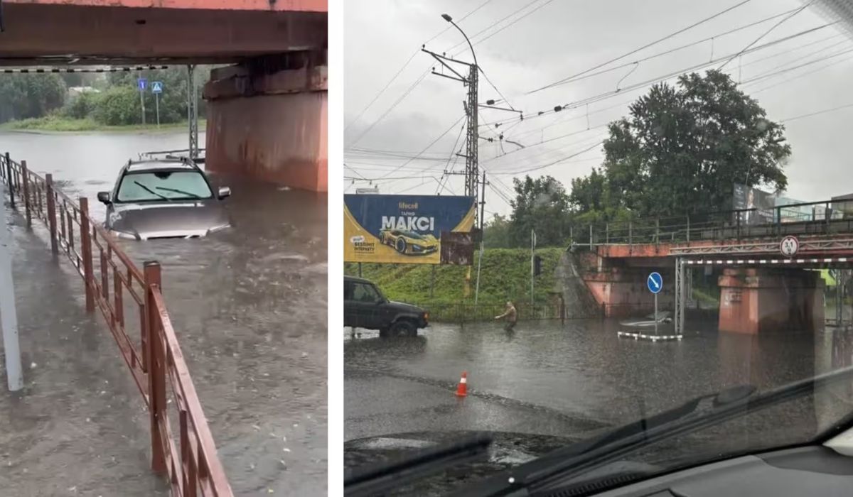 A heves esőzések következtében szeptember 14-én elöntötte a víz a vasúti híd alatti aluljárót Ungváron.