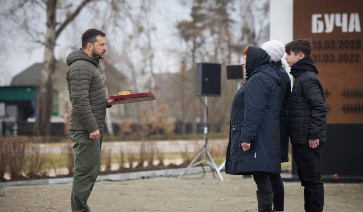 a külföldi vezetők részt vesznek a város orosz megszállás alóli felszabadításának alkalmából megrendezett megemlékezésen, hogy leróják tiszteletüket az orosz agresszió helyi áldozatai előtt.