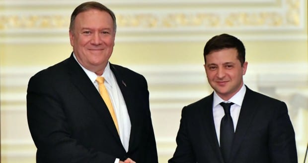 Az elnöki hivatal közleményben kifejtette: Zelenszkij emellett köszönetet mondott az Egyesült Államok által Ukrajnának nyújtott pénzügyi támogatásért. Hangsúlyozta a biztonsági téren való együttműködés fontosságát a két ország között. Tájékoztatta Pompeót Kijevnek a Donyec-medencei válság békés rendezése érdekében tett erőfeszítéseiről, az e téren elért eredményekről, és megköszönte az Egyesült Államoknak Ukrajna szuverenitásának és területi integritásának folyamatos támogatását.