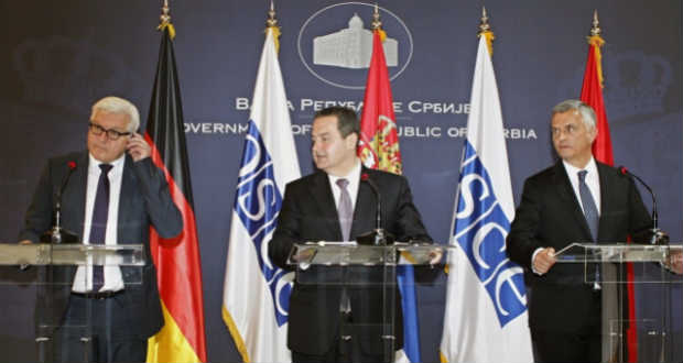 Didier Burkhalter svájci, Ivica Dacic szerb és Frank-Walter Steinmeier német külügyminiszter a szerb fővárosban tartott találkozót követően a sajtónak azt mondták: politikai párbeszédet kell kezdeményezni Ukrajnában, hogy mihamarabb béke legyen az országban.