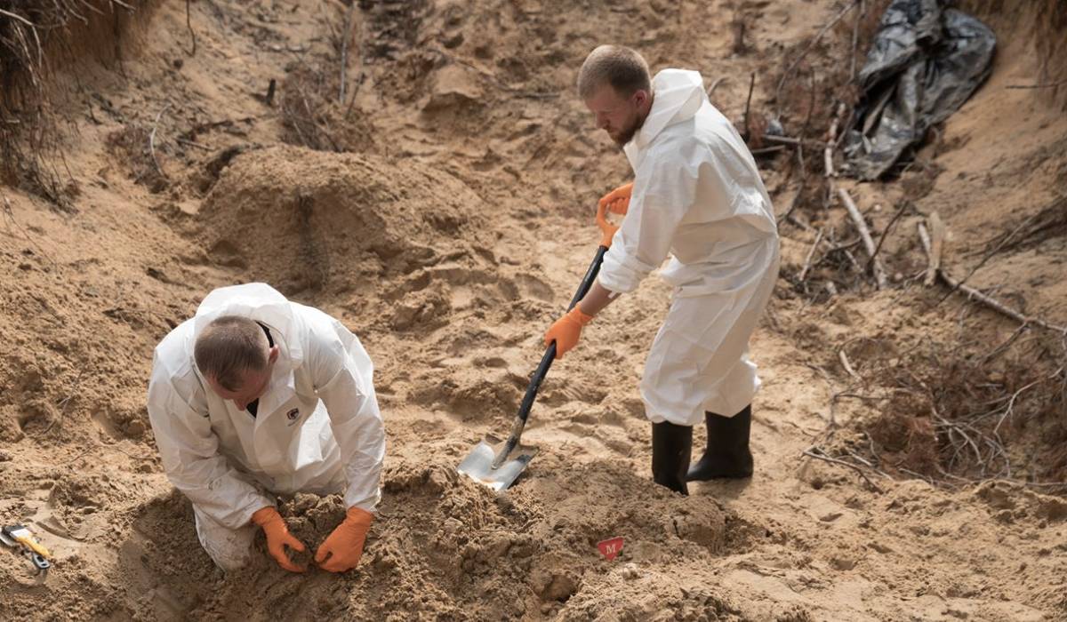 Hátrakötött kezű, agyonlőtt ukrán katonák holttesteit találták az izjumi tömegsírban