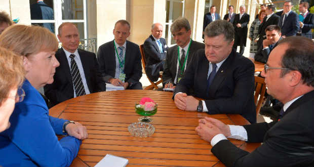 Megerősítette a kelet-ukrajnai tűzszünet melletti elkötelezettségét Francois Hollande francia elnök, Angela Merkel német kancellár, Vlagyimir Putyin orosz és Petro Porosenko ukrán elnök szerdán folytatott, csaknem kétórás konferenciabeszélgetésében – tudatta a francia elnöki hivatal.