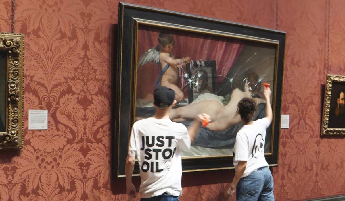 Nyitókép: London, 2023. november 6.A Just Stop Oil környezetvédő csoport által közreadott képen a szervezet két klímaaktivistája a Diego Velázquez spanyol mester Vénusz a tükörrel című festményét védő üveget üti kis kalapáccsal a londoni Nemzeti Galériában 2023. november 6-án.MTI/AP/Just Stop Oil