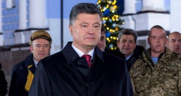 „A most véget érő év a legnehezebb volt számunkra az utóbbi hetven esztendőben. A kegyetlen ellenség életünkre, szabadságunkra, függetlenségünkre tört, megtámadta területünket” – mondta, Oroszországra utalva, amely márciusban magához csatolta a Krímet, és amelyet azzal gyanúsítanak, hogy megszervezte az oroszbarát kelet-ukrajnai lázadást, felfegyverezte a lázadókat.