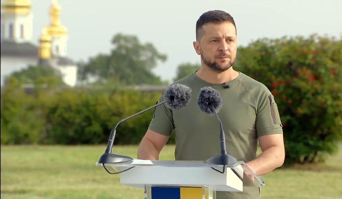 Volodimir Zelenszkij az ukrán nemzeti zászló napja alkalmából Kijevben tartott ünnepélyes zászlófelvonáson kijelentette, hogy az ukrán állam lobogója „örökre visszatér minden ideiglenesen megszállt területre”.