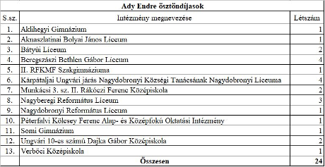 A 2022/2023-as tanévben is kiosztásra került az Ady Endre ösztöndíj