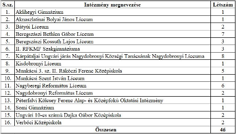 A 24 nyertes az alábbi oktatási intézményeket képviseli: