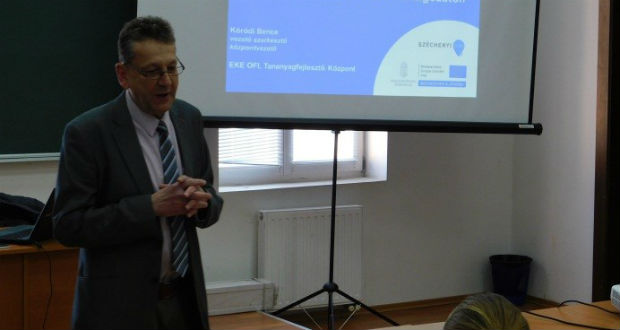 Az előadást és a műhelyfoglalkozást az Oktatáskutató és Fejlesztő Intézet Tananyagfejlesztő Központjának vezetője, Kóródi Bence úr (előadásának címe: Módszertan és tudásépítés az újgenerációs taneszközrendszerben az alsó tagozaton, illetve Az első osztályos taneszközök koncepciójának és elméleti hátterének bemutatása) és a Lázár Ervin Általános Iskola (Budapest) tanárnője, Grófné Salamon Éva (műhelymunka: Az olvasás és írás tanítása a gyakorlatban az Ábécés olvasókönyv tankönyvcsomag segítségével) tartották.