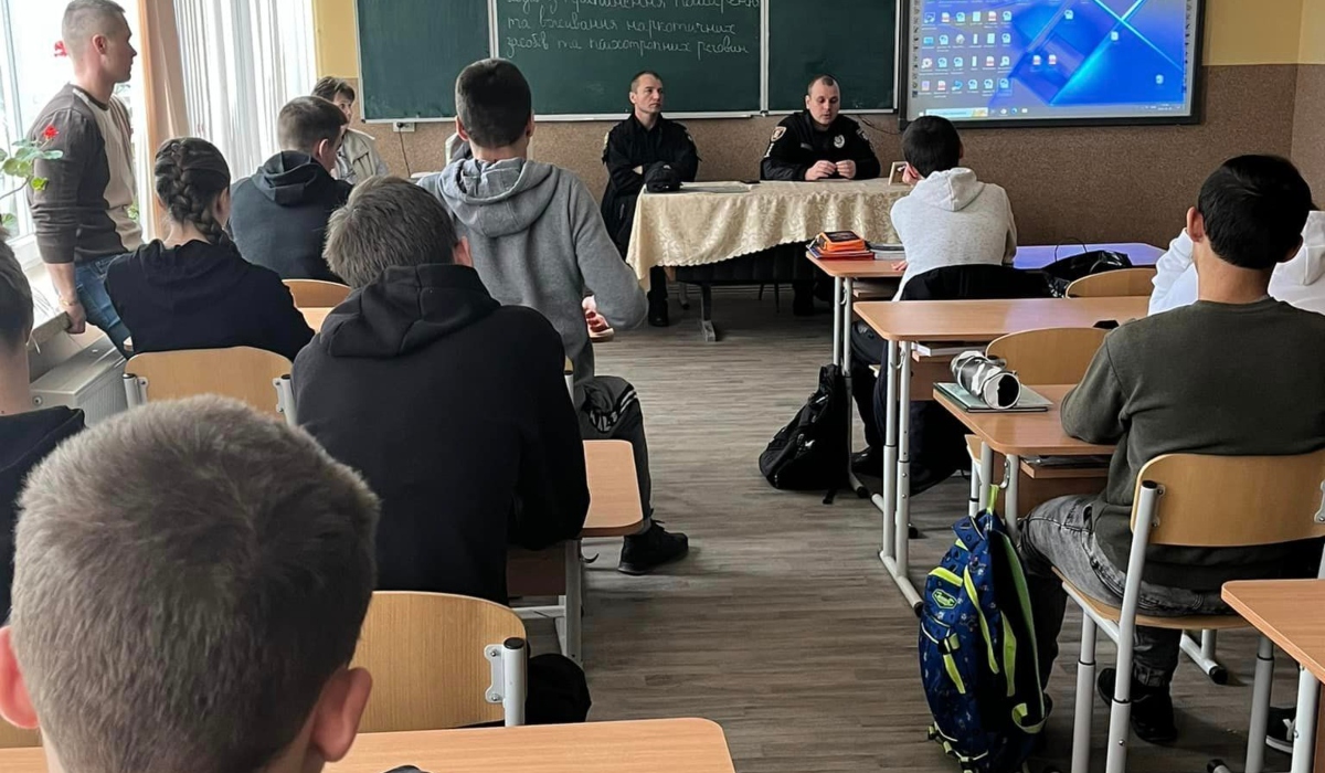 Iskolásoknak tartott előadást március 7-én Mihajlov Olekszandr százados, a fiatalkorúak prevenciós főfelügyelője, Kolesnyik Tetjana gyermekszolgálati osztályvezető és Szuhaj Ivan rendőrtiszt a Nagyberegi Dobrai Péter Középiskolában.