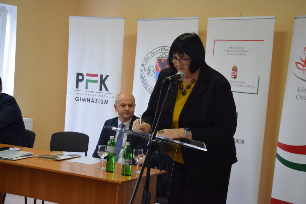 Őt követte Jakab Andrea, a P. Frangepán Katalin Gimnázium megbízott igazgatója, aki Búcsú község, valamint a búcsúi óvoda történetét tárta a hallgatók elé. Ezt követően Orosz Ildikó és Jakab Andrea aláírták az óvoda épületének átadásáról szóló megállapodást.