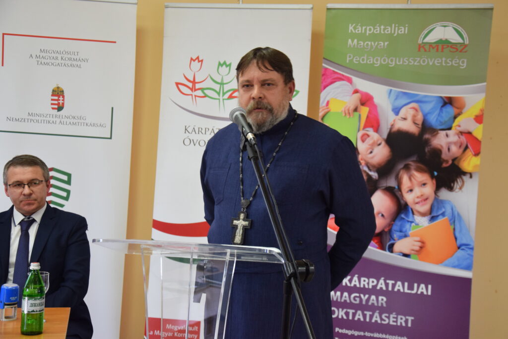 Orosz Ildikó köszöntőjében örömét fejezte ki aziránt, hogy a KMPSZ elnökeként részt vehet Magyarország ezen nagylelkű programjában, hisz a Szovjetunió fennállásának időszakában az óvodák az egyházak parókiájának épületébe kerültek, majd a rendszerváltás után az épületeket visszaadták az egyházaknak, de új óvodákat nem építettek helyükbe.