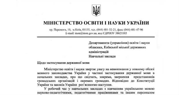 Az Ukrán Oktatási és Tudományügyi Minisztérium azt kéri a kisebbségi magyar iskolák vezetőitől, hogy népszerűsítsék az államnyelvet a tanulók és a pedagógusok körében. Erről a szaktárca az október 7-én kelt, 1/9-542-es számú körlevélben értesítette a tanintézményeket.