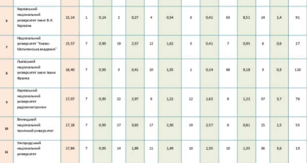 Az Ungvári Nemzeti Egyetem (UNE) bekerült a legjobb 15 egyetem közé Ukrajnában a „Jevroszvita” Nemzetközi Projektek Központja adatai szerint – tudatta július 7-én a mukachevo.net internetes hírportál.