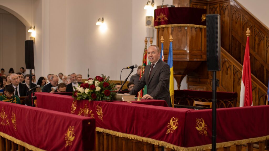 Az ünnepélyes átadó Kárpátalja történelmi zászlóinak bevonulásával kezdődött, miután a Beregszászi Református Egyház képviseletében Margitics János lelkész köszöntötte a résztvevőket.