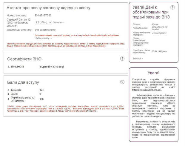 Ukrajnában 2016-ban, a korábbi évektől eltérően, alapképzés (BA-, BSc-képzés) első évfolyama nappali tagozatára csak elektronikus úton nyújthatóak be a jelentkezések. Az online jelentkezési kérelmeket a felvételizők az ez.osvitavsim.org.ua honlapon történő regisztráció után nyújthatják majd be. Az elektronikus felület a felvételi időszak kezdetétől, tehát 2016. július 11-től lesz elérhető.