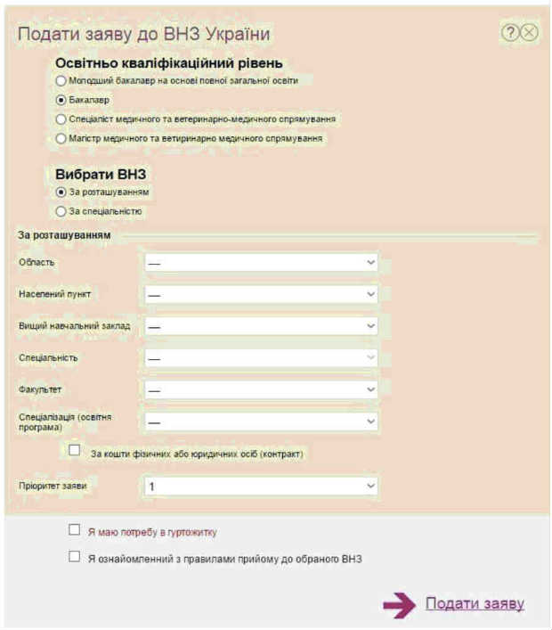 – a jelentkezését úgy véglegesítheti, ha a Kérvény benyújtása (Подати заяву) lehetőségre kattint.