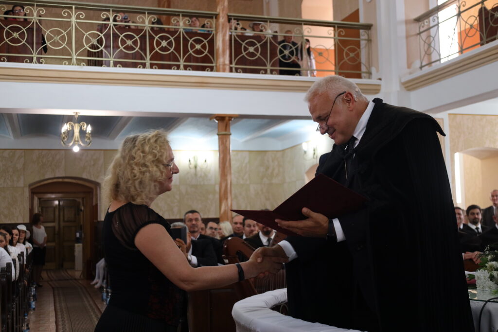 Az istentisztelet végén Zán Fábián Sándor köszönetet mondott mindazoknak, akik fontos szerepet játszottak az iskolák létrejöttében. Azoknak a családoknak, akik befogadták az első diákokat, hiszen a kezdetekben még nem voltak kollégiumok, azoknak az intézményvezetőknek, akik először adtak engedélyt a református oktatáshoz, és azoknak a háttérembereknek, akik fáradhatatlanul dolgoztak, hogy az épületekben legyen fűtés, villany és víz. A KRE püspöke kiemelt köszönettel illette Gazda Erzsébetet, aki 1985-től szívén viselte a kárpátaljai magyar oktatást.