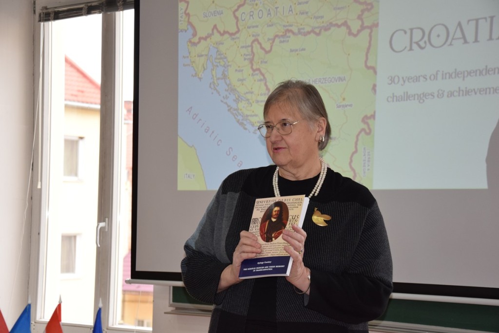 Ezt követően Anica Djamić nagykövet üdvözölte a jelenlévőket, és tartotta meg Horvátország, 30 év függetlenség című előadását. Kitért az ország történelmére, amely a második világháború után Jugoszlávia része volt, majd az államalakulat felbomlása után 1991-ben kikiáltotta a függetlenségét. Ezen kívül szót ejtett a családi értékek és a hazafias érzelmek meglétéről. Kiemelte továbbá Horvátország szerepét az Európai Unióban, valamint a jövőbeli kihívásokról is említést tett. Előadásának zárásaként beszélt Horvátország és Ukrajna együttműködéséről, kiemelve a politikai, gazdasági és pénzügyi támogatásokat.