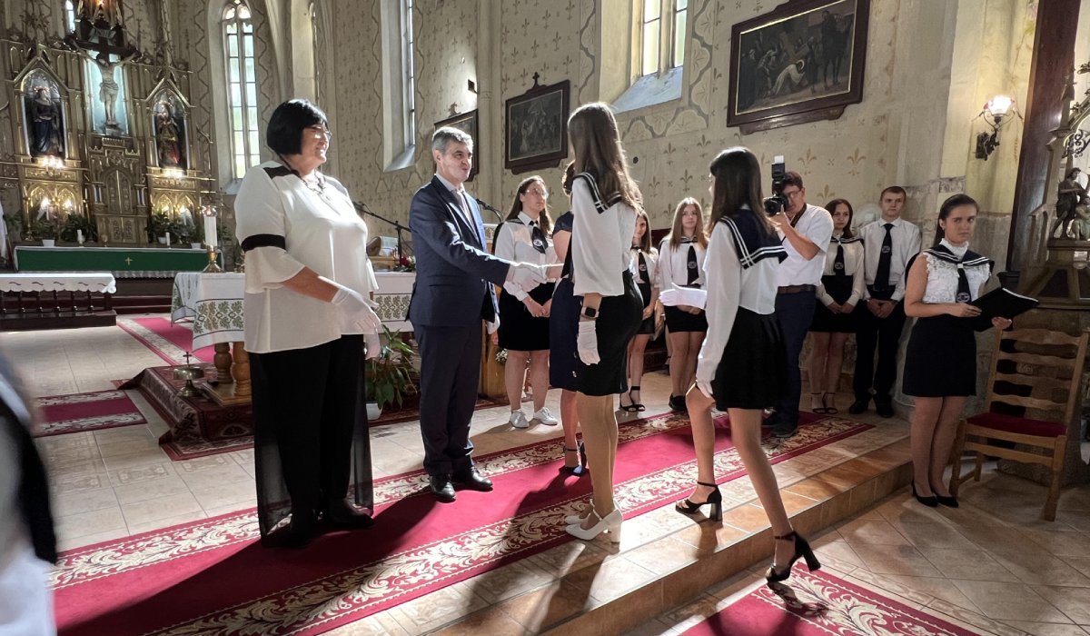Tizedik születésnap… Elég csak visszagondolni az elmúlt évekre, és megérthetjük, hogy az intézmény első évtizede egyáltalán nem volt könnyű, és megmaradása nem volt egyértelmű. Mint tudjuk, Ukrajnában éppen 10 évvel ezelőtt kezdődött el a háború, ami megnehezítette a kárpátaljaiak életét is. Majd a nyelvtörvény, a pandémia és a jelenlegi orosz–ukrán konfliktus újra és újra próbára tette a maréknyi kárpátaljai népet, többek közt a szakképzési intézet hallgatóit is. Mindennapivá vált a rendkívüli állapot. Így valóban van miért köszönetet mondani, és a hála elsősorban az Istennek szól, aki a nehéz idők ellenére és százszoros terméssel ajándékozta meg a kezdeményezést. Ezért a beregszászi római katolikus templom méltó helyszínként szolgált a rendezvény lebonyolításához. Hiszen egyrészt jelzi, hogy a társadalom két alappillére, a templom és az iskola összetartoznak, másrészt a jelenlévők az Isten házában nyithatták meg hálatelt szívüket a Gondviselő Atya előtt, és mondtak neki köszönetet az intézmény 10. születésnapja alkalmából.